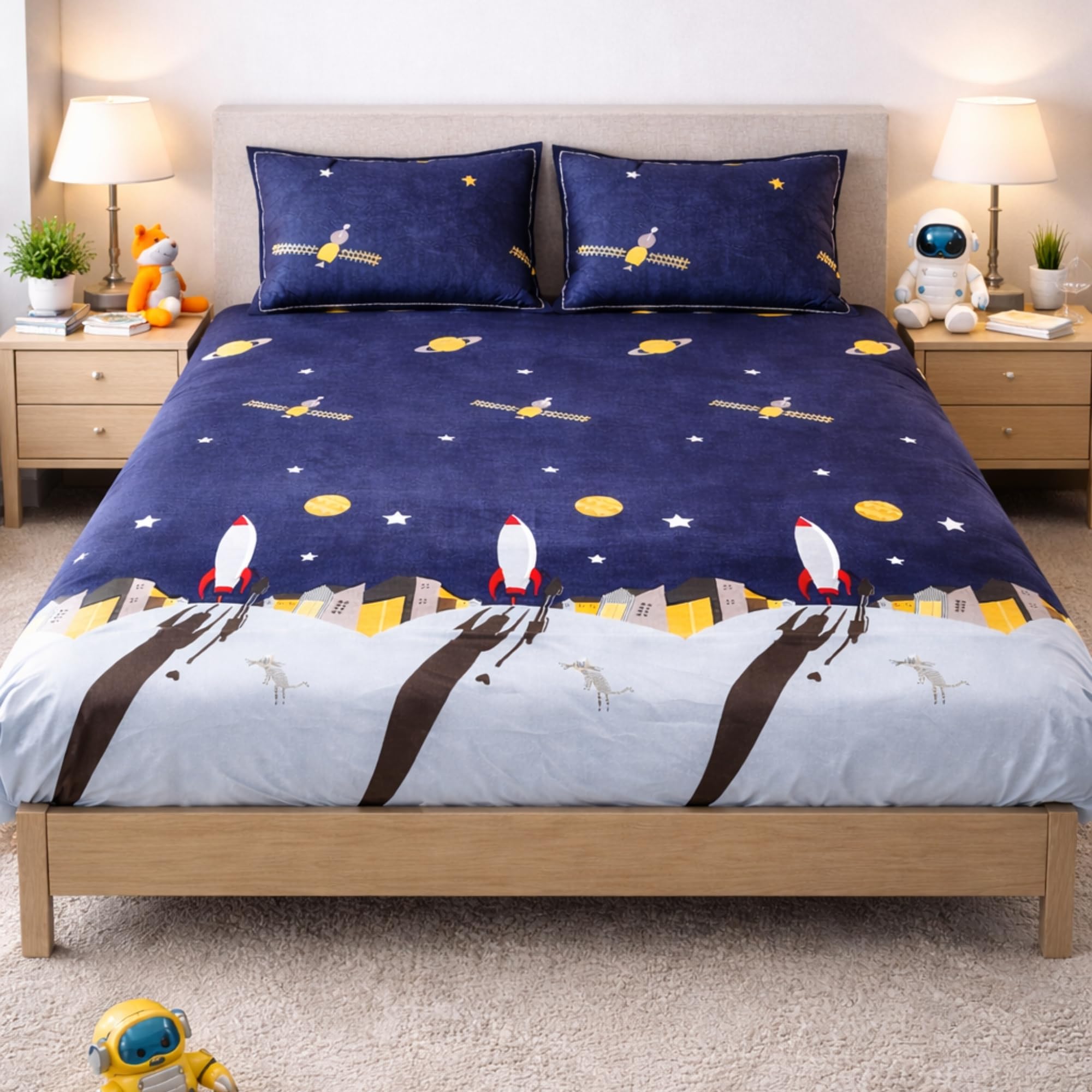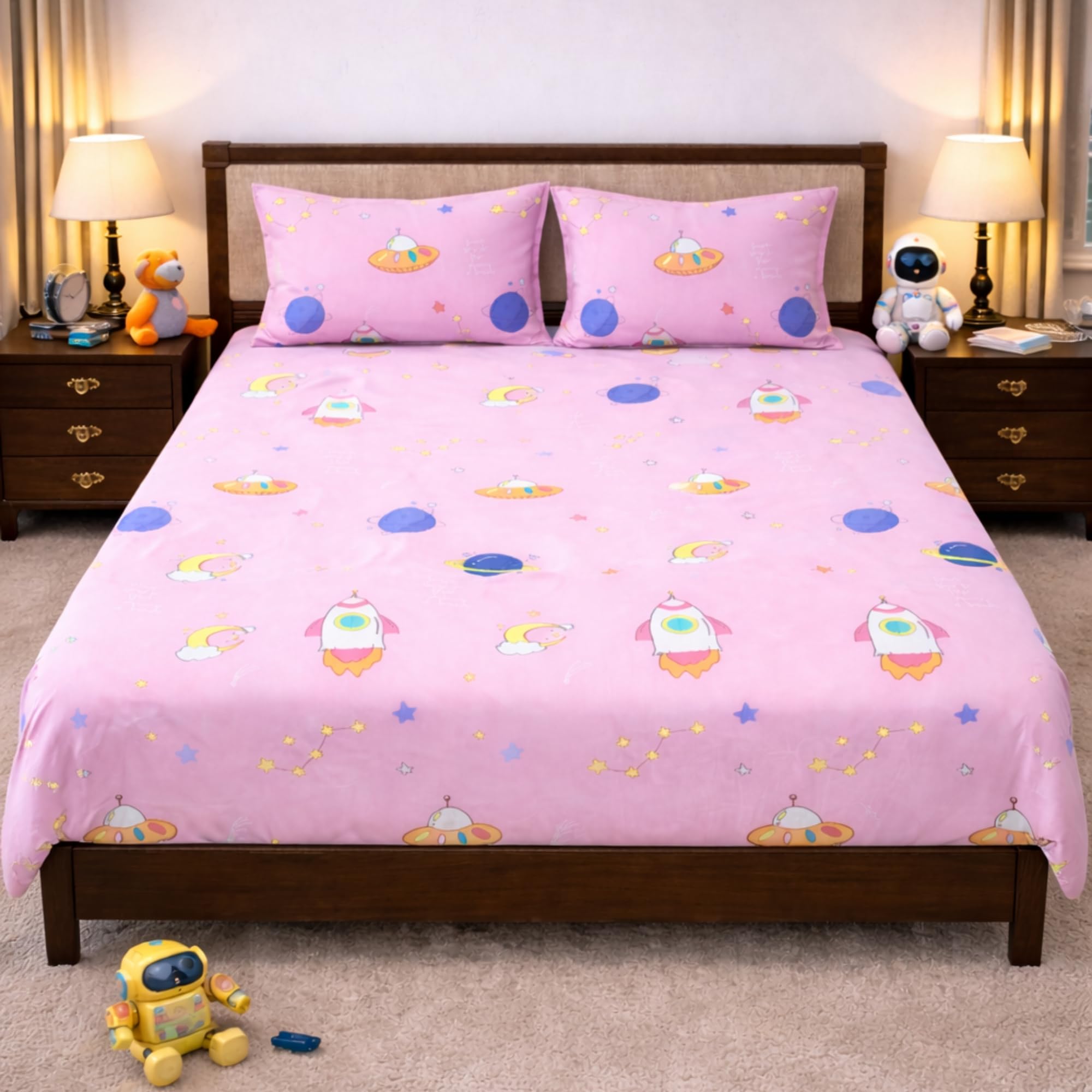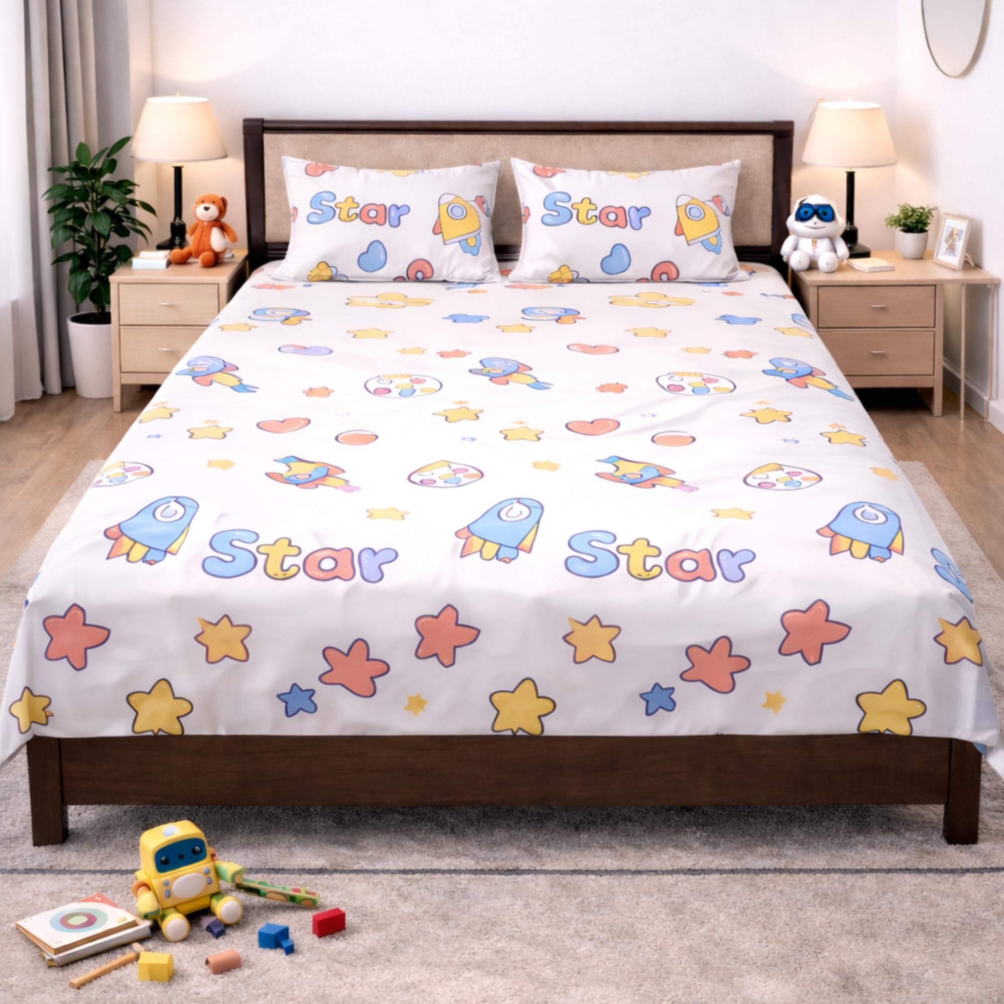 1 King Size Bedsheet & 2 Pillow Cover