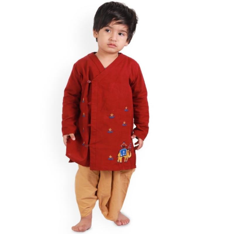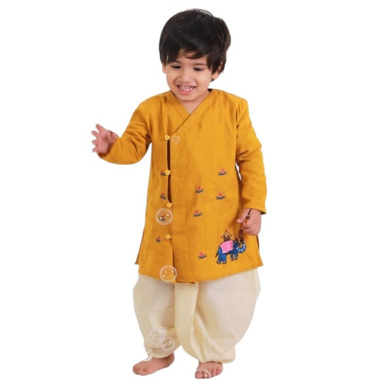 Cotton Angrakha Dhoti Kurta Set for Boys